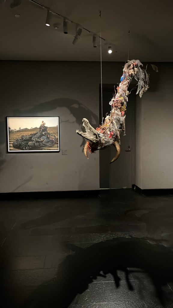 Le troisième espace, « le doute », constitue un véritable basculement. C’est un étage sombre, et le musée se mue en caverne étouffante. L’histoire d’amour se transforme en relation toxique : pollution, dépendance, finitude des ressources. Les œuvres sont dures, parfois violentes.