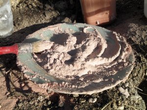 J’ai teinté de l’eau avec cette argile ocre, et j’ai mélangé le tout avec de la chaux.