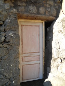 Pour peindre la porte, que mon frère a achetée dans la banlieue de Montpellier, on a récupéré de l’argile rose vers le Pic Saint-Loup.