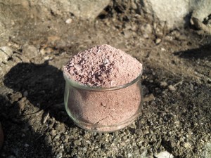 C’est une roche très friable, ocre tirant sur le saumon, grasse comme de la craie.