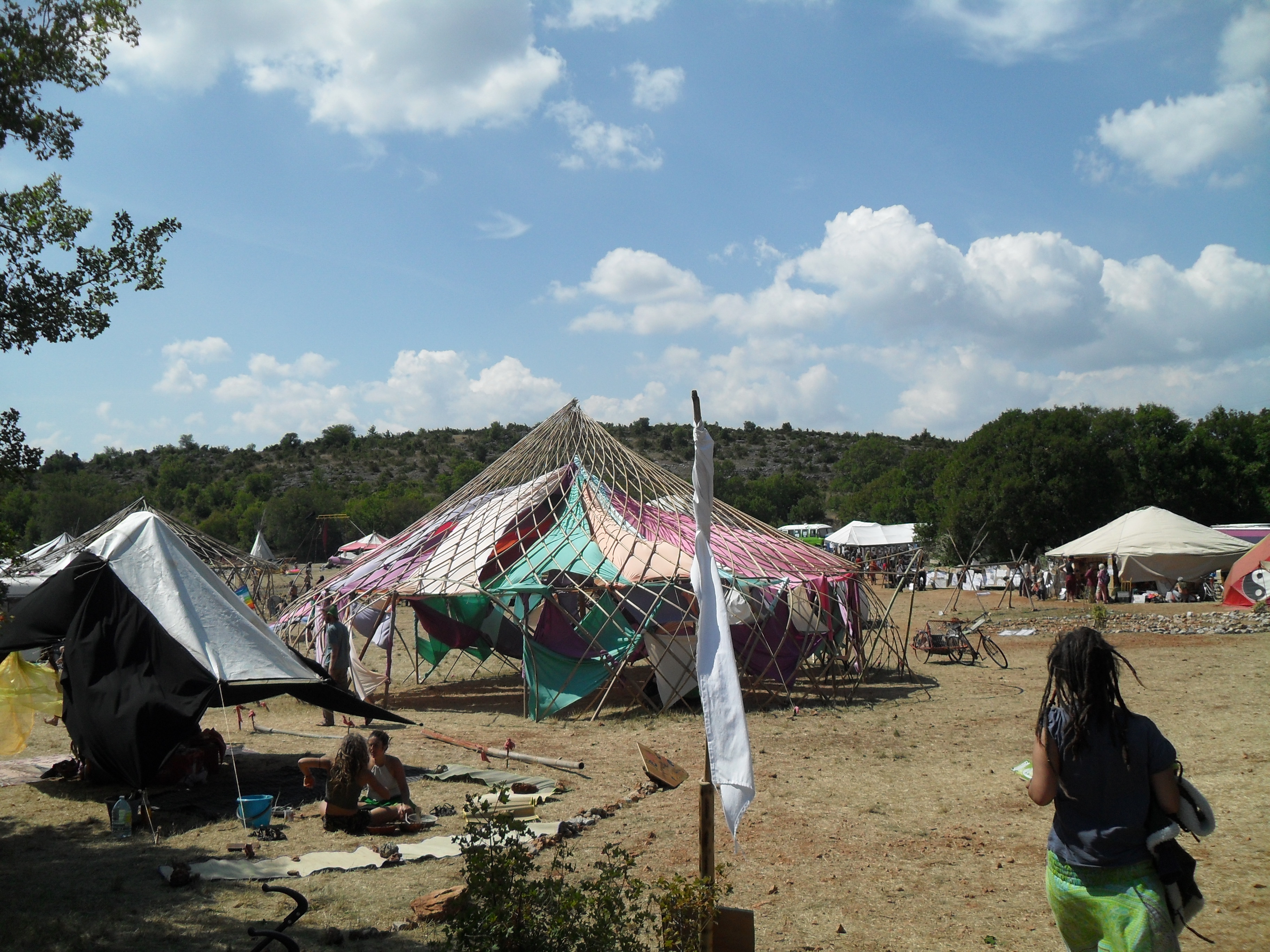 Dans la « yourte Mama », où s’affairaient la fourmilière des organisateurs et des bénévoles qui n’avaient pas le temps de me parler, j’ai été accueilli par la comptable (chez eux, on dit « animatrice du trésor »). Elle m’a expliqué longuement, gentiment, avec le sourire et une bonne humeur communicative, ce qui l’avait amenée là, sur un causse, au milieu de ces va-nu-pieds.
