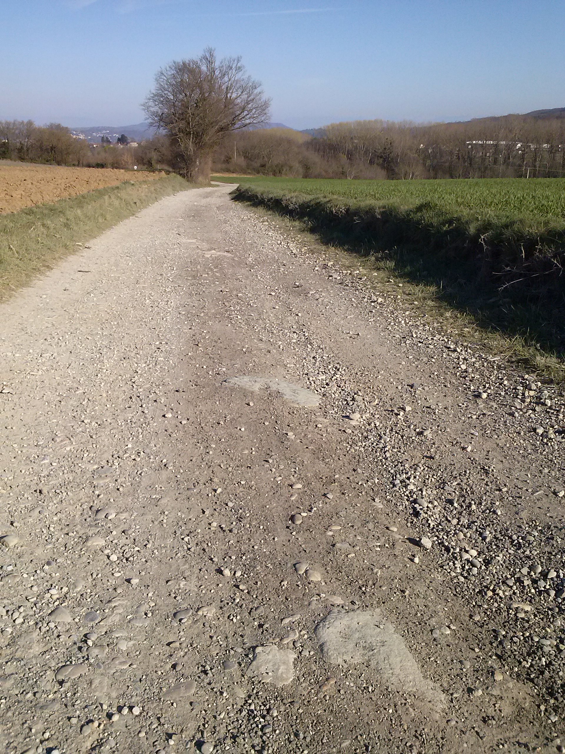 Je crois que c’est volontaire. Ces messieurs du Conseil général ont dû vouloir préserver les rares vestiges du dallage ancien de la voie gallo-romaine.