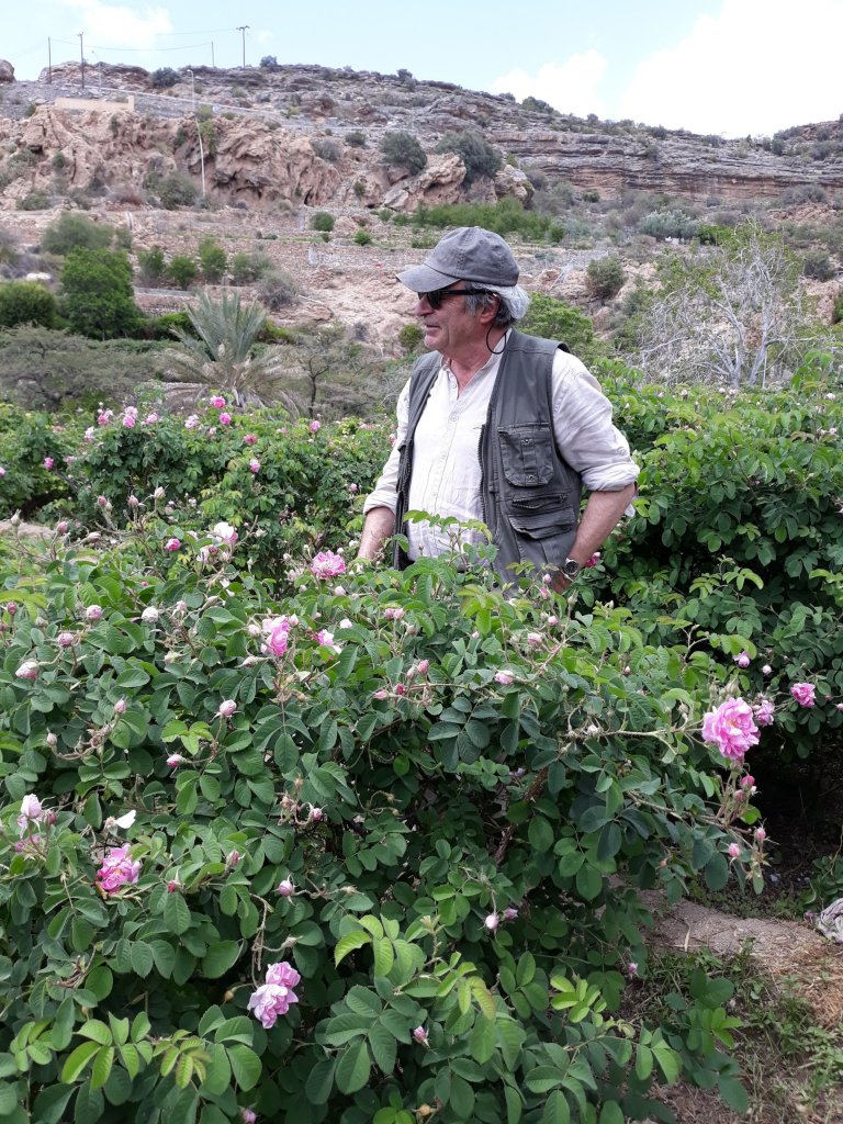 Nous roulons les quelques heures qui nous séparent de ma maison, non sans rajouter une petite heure de route due à une erreur de direction à la sortie de la capitale. Le lendemain nous allons à la montagne pour faire la promenade des roses. Avril est certainement le meilleur moment de l’année pour visiter les montagnes d’Arabie : les fleurs que l’on cultive pour produit l’eau de rose sont en pleine floraison. On se promène sur des chemins escarpés qui dégagent une odeur de paradis.