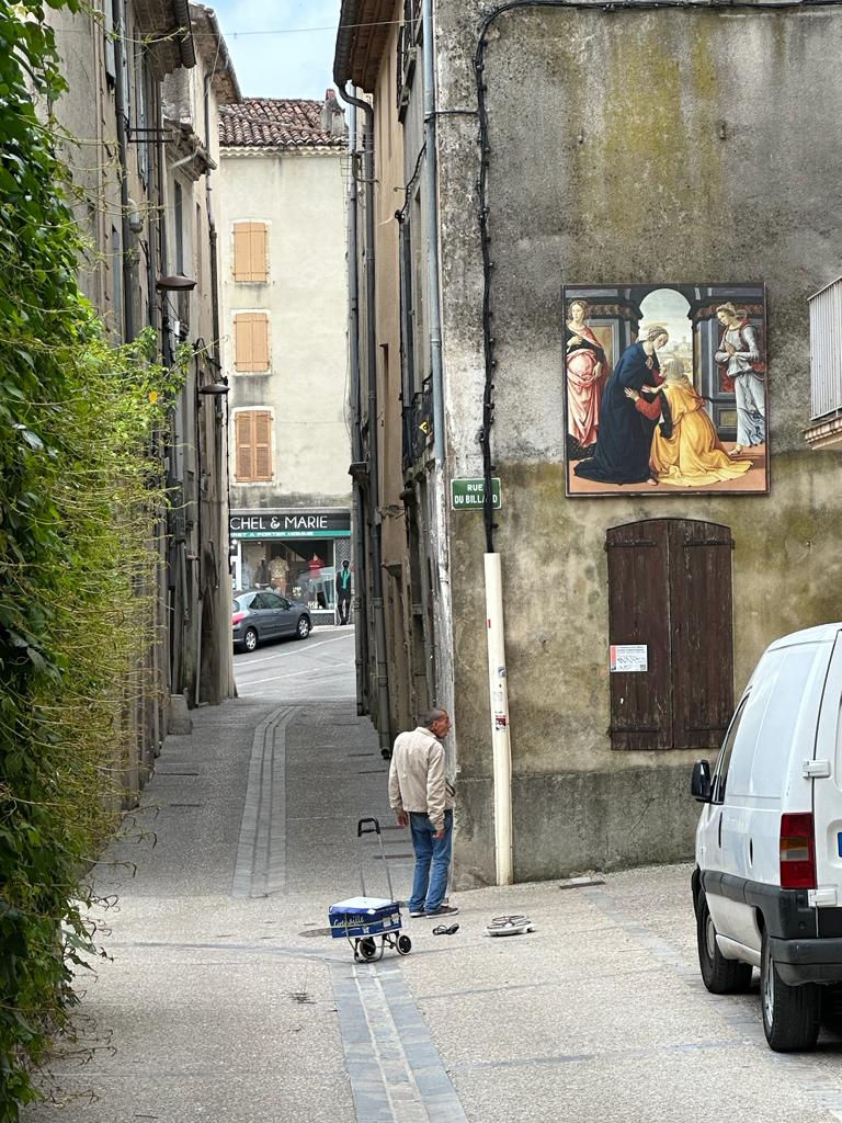 On note cependant une remarquable correspondance entre les couleurs de cette Visitation et celles du mur de la vieille ville.