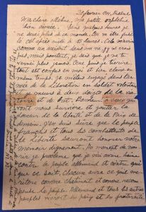 Ma chère Méline, ma petite orpheline bien aimée. Dans quelques heures je ne serai plus de ce monde. On va être fusillé cet après-midi à 15 heures. Cela m’arrive comme un accident dans ma vie, j’y ne crois pas, mais pourtant, je sais que je ne te verrai plus jamais. Que puis-je técrire, tout est confus en moi et bien claire en même temps. Je m’étais engagé dans l’armée de Libération en soldat volontaire et je meurs à deux doigts de la victoire et de but.