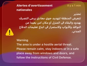 C’est en chemin que mon téléphone a retenti. Pas une notification ordinaire : une alarme gouvernementale, stridente, impossible à ignorer. Le message était clair : menace aérienne en cours, rester chez soi ou dans un lieu sûr, loin des portes et des fenêtres.
