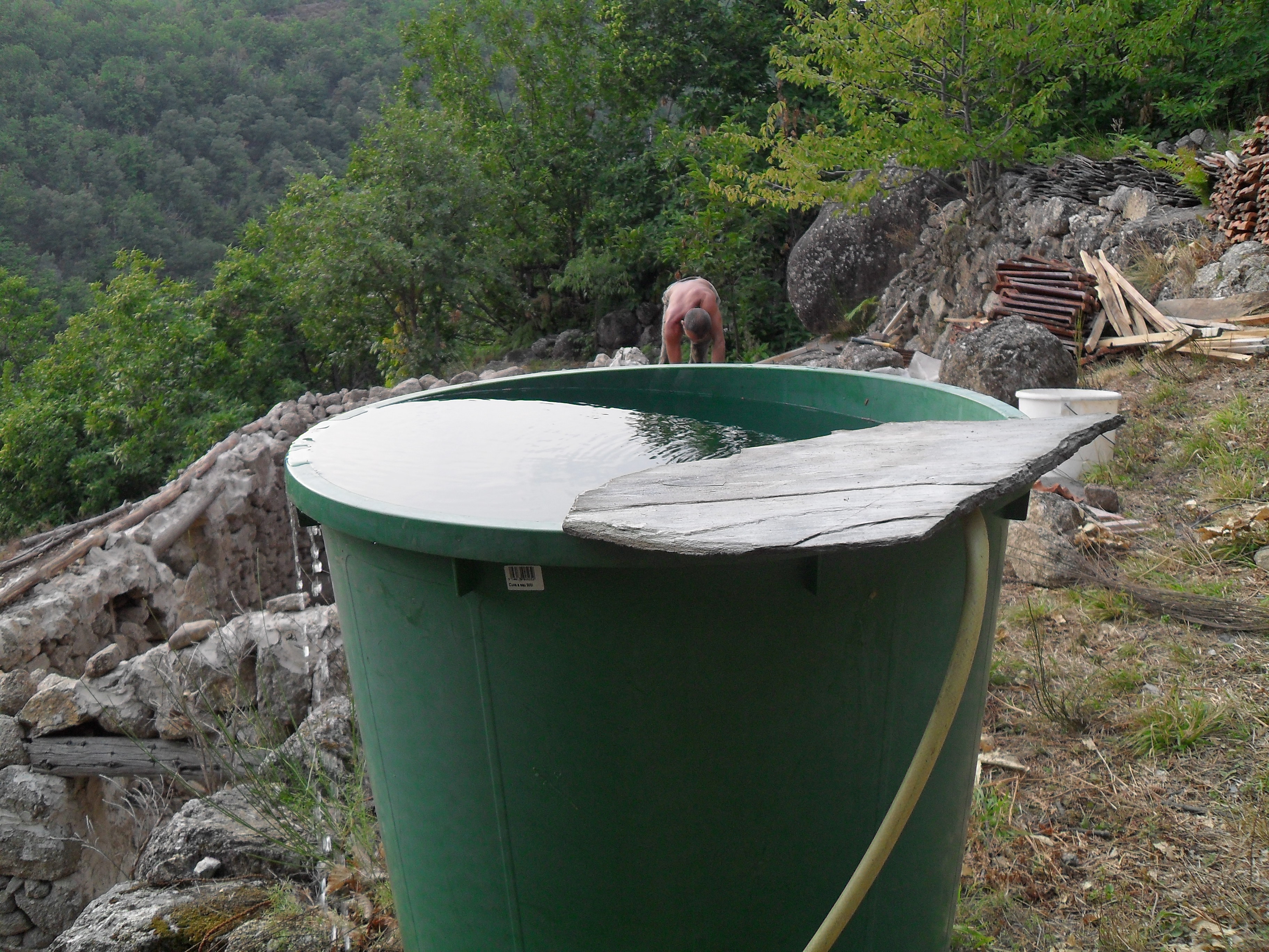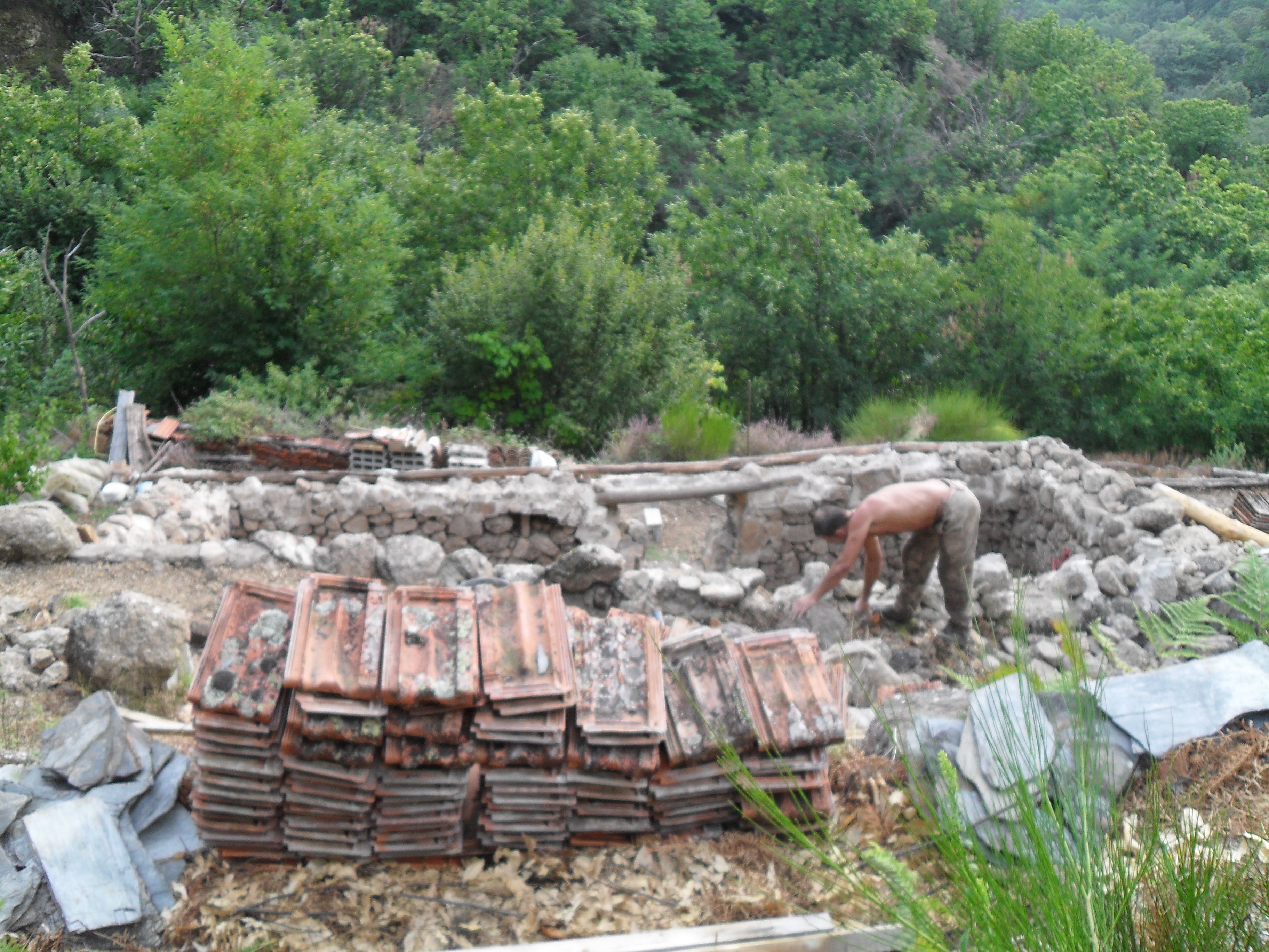 À cause de fortes pluies récentes et des fuites d’eau dans la cabane, il a fallu laisser de côté le chantier du mazet, la maçonnerie, et se concentrer sur la maintenance de la cabane en bois qui est pour l’instant mon lieu de vie principal.