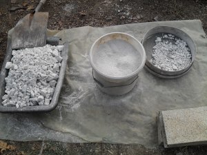 Mardi matin, quand mon frère rentre de sa nuit au lycée, nous montons au terrain. Nous travaillons à l’imperméabilité du cabanon, agrafant des longueurs de plastique sur le plafond, rafistolant les fenêtres et confectionnant une porte pour l’entrée de derrière. Pendant que mon frère s’occupait de cela, je « faisais du sable » pour le mortier dont on aura besoin pour la maçonnerie.