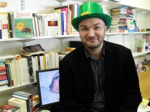 L’argent qui m’a été attribué servira à faire un petit voyage en Suisse, aux archives de l’écrivain. D’où la présence de ses Oeuvres complètes en arrière plan de ma photo. Ainsi en un seul cliché, sur une seule ligne, il y a à la fois ma tête, l’Irlande et la Suisse.